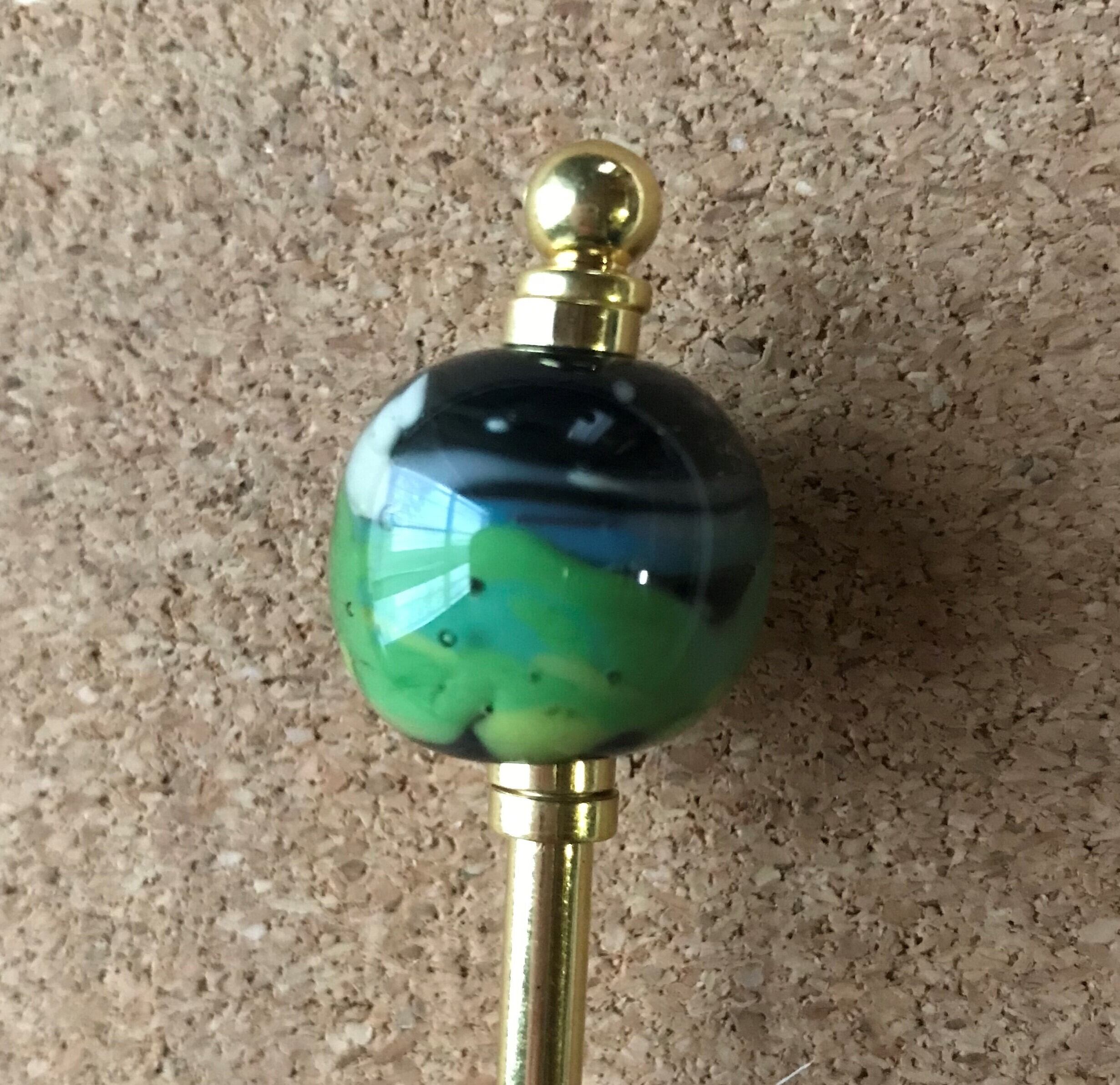 山からの噴煙をイメージして描いたトンボ玉を使ったかんざしです。